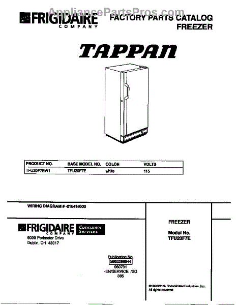 Parts for Frigidaire TFU20F7EW1: 01 - Cover Parts