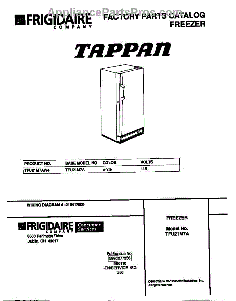 Parts for Frigidaire TFU21M7AW4: 01 - Cover Parts