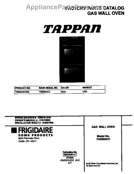 Parts for Frigidaire TGB504CCB3: 01 - Cover Parts