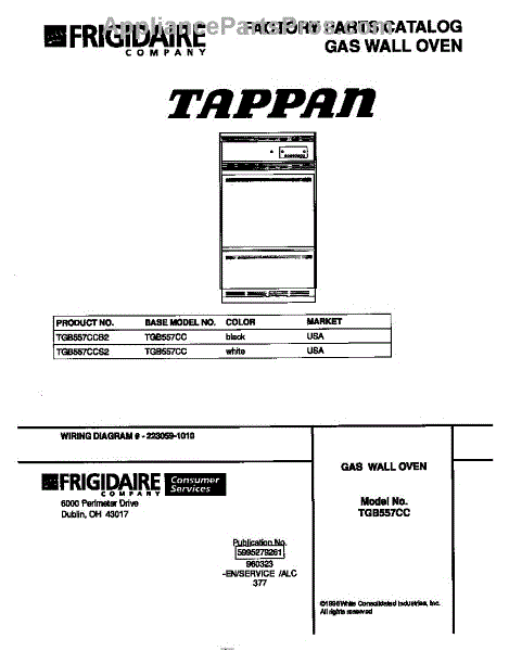 Parts for Frigidaire TGB557CCB2: 01 - Cover Parts