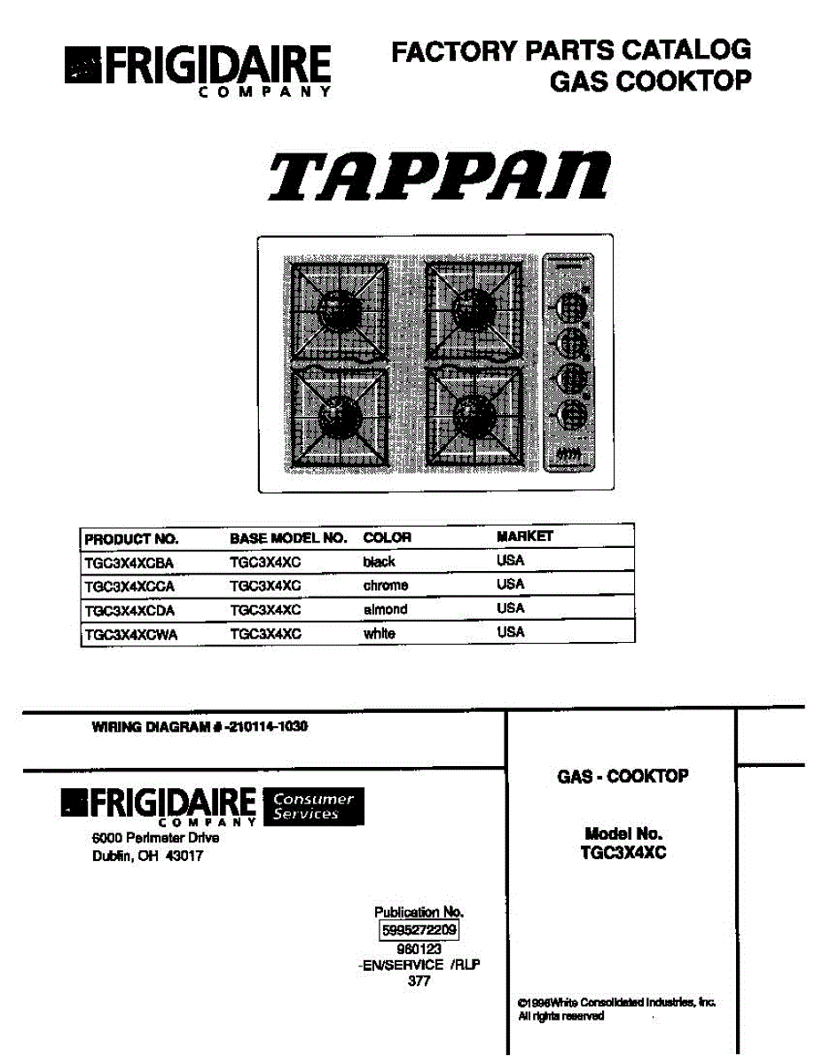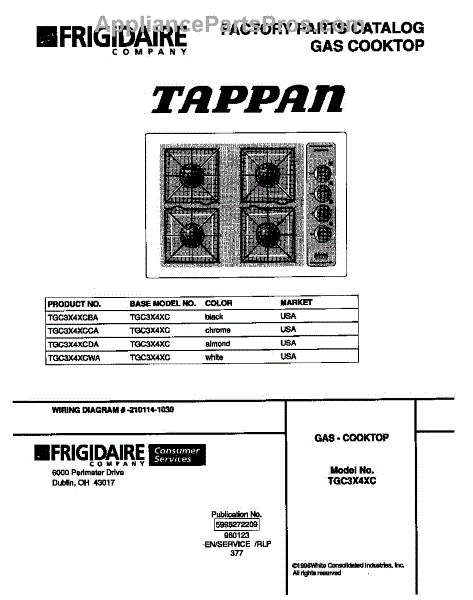 Parts for Frigidaire TGC3X4XCWA: 01 - Cover Parts