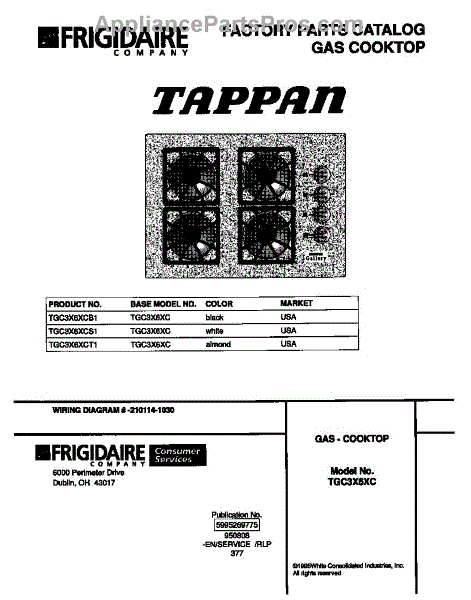 Parts for Frigidaire TGC3X6XCT1: 01 - Cover Parts