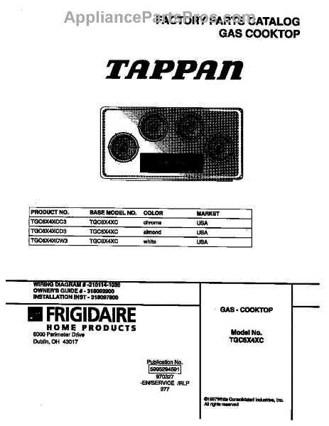 Parts for Frigidaire TGC6X4XCD3: 01 - Cover Parts