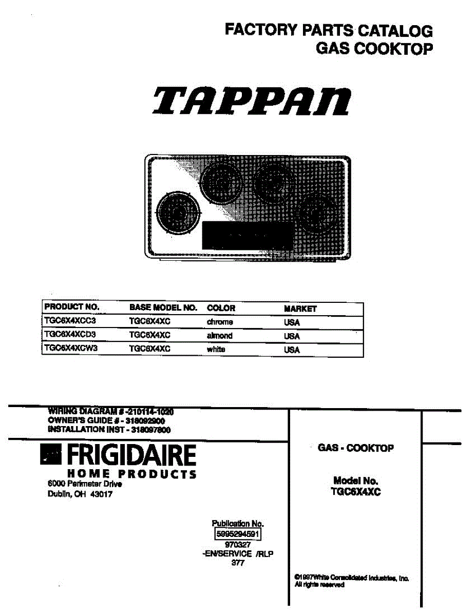 Parts for Frigidaire TGC6X4XCW3: 01 - Cover Parts