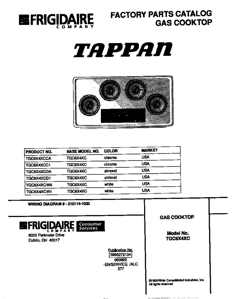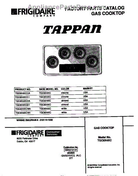 Parts for Frigidaire TGC6X4XCWA: 01 - Cover Parts