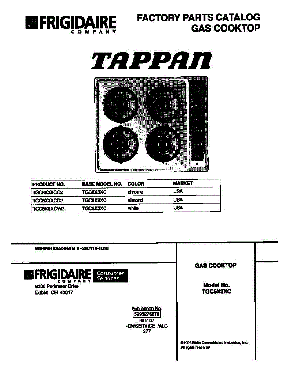 Parts for Frigidaire TGC8X3XCC2: 01 - Cover Parts