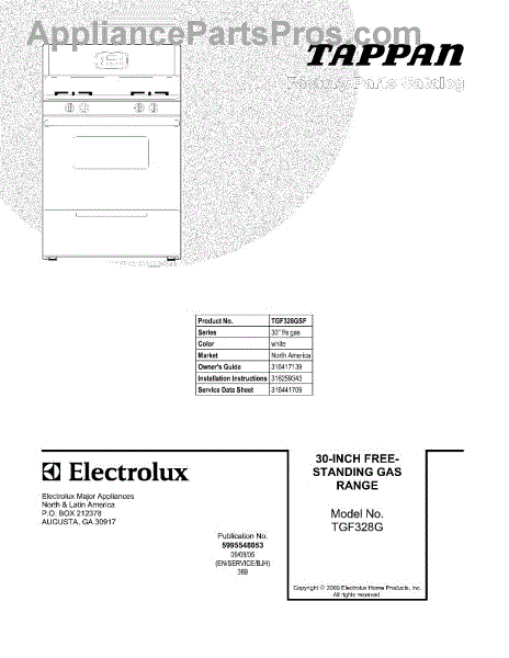 Parts for Frigidaire TGF328GSF: 01 - Cover Parts
