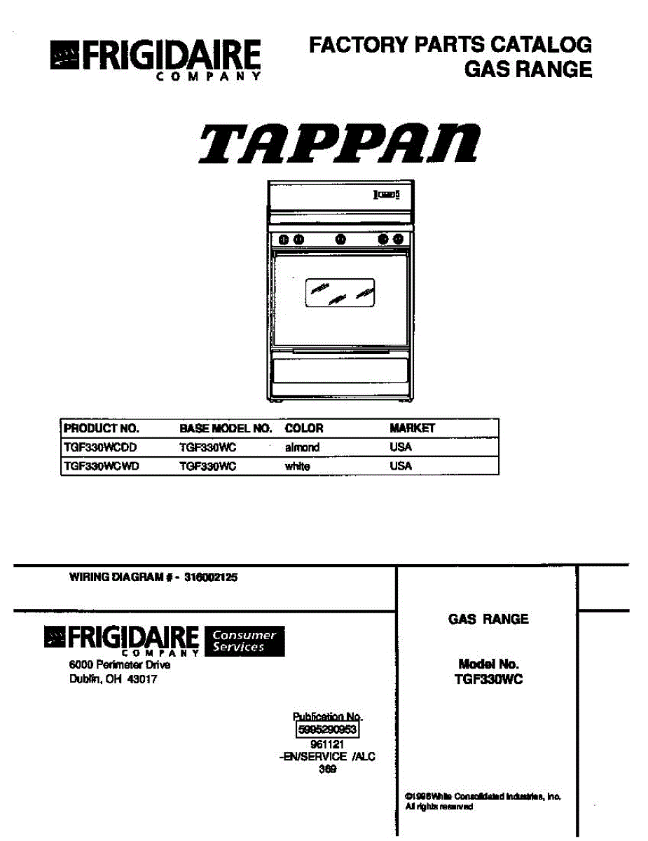 Parts for Frigidaire TGF330WCWD: 01 - Cover Parts