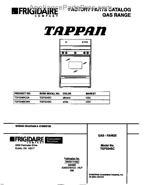 Parts for Frigidaire TGF334BCWA: 01 - Cover Parts
