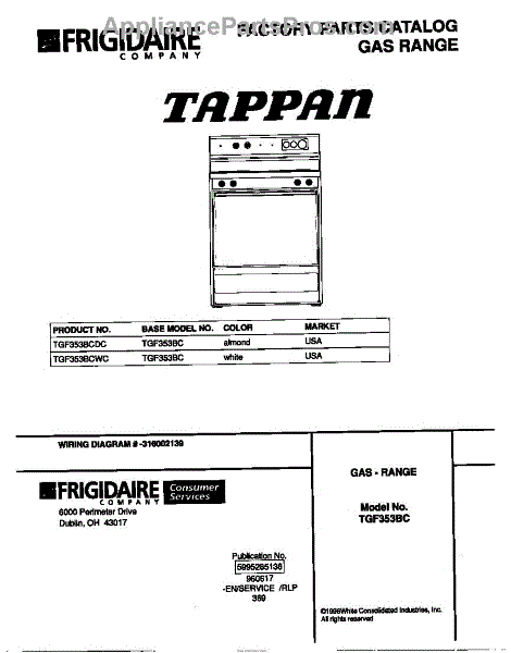 Parts for Frigidaire TGF353BCWC: 01 - Cover Parts