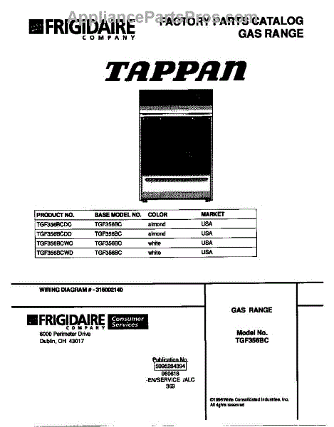 Parts for Frigidaire TGF356BCWC: 01 - Cover Parts
