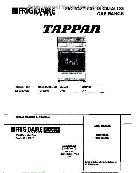 Parts for Frigidaire TGF356CCSC: 01 - Cover Parts