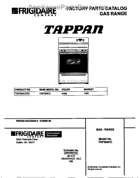 Parts for Frigidaire TGF356CCSD: 01 - Cover Parts