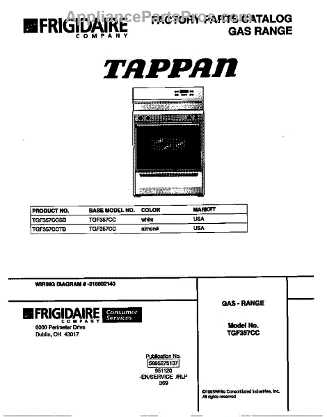 Parts for Frigidaire TGF357CCTB: 01 - Cover Parts
