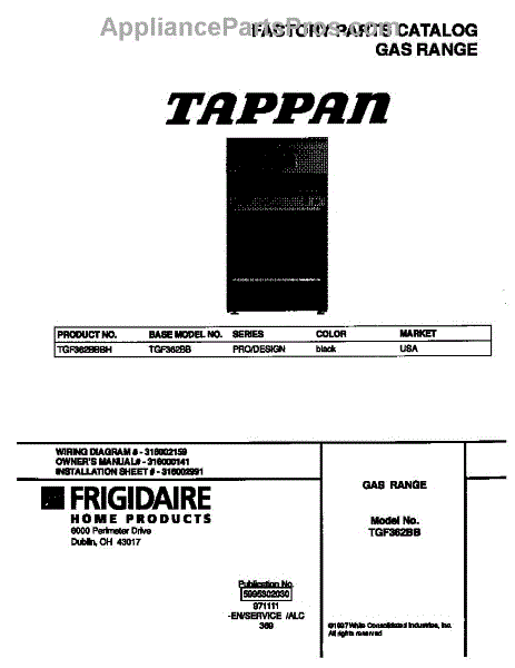 Parts for Frigidaire TGF362BBBH: 01 - Cover Parts