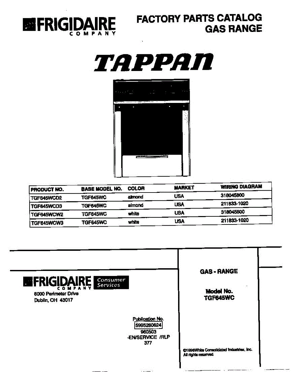 Parts for Frigidaire TGF645WCD3: 01 - Cover Parts
