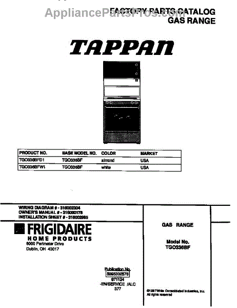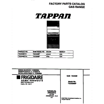 Parts for Frigidaire TGO336BFD1: 01 - Cover Parts