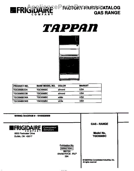 Parts for Frigidaire TGO356BCWA: 01 - Cover Parts