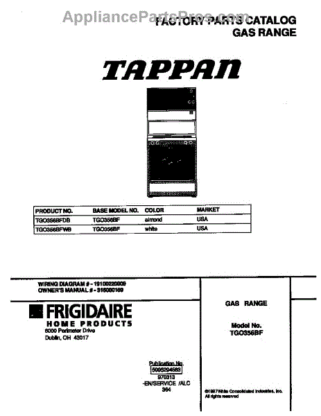Parts for Frigidaire TGO356BFWB: 01 - Cover Parts