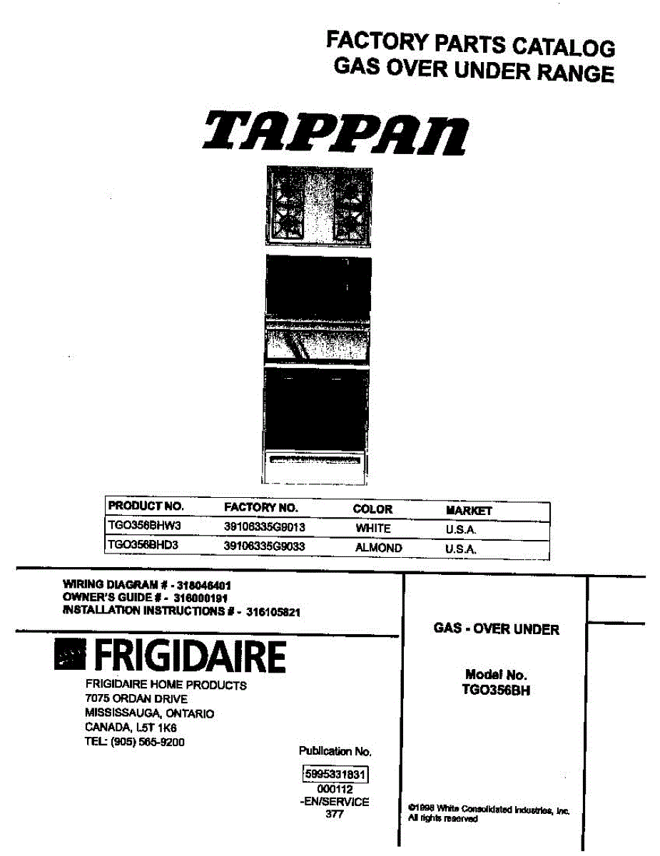 Parts for Frigidaire TGO356BHW3: 01 - Cover Parts