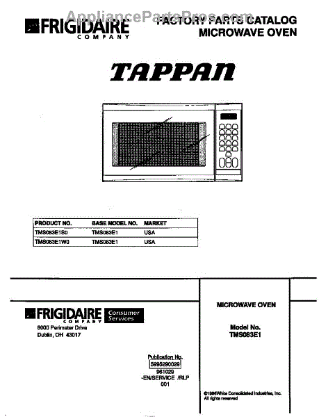 Parts for Frigidaire TMS083E1S0: 01 - Cover Parts
