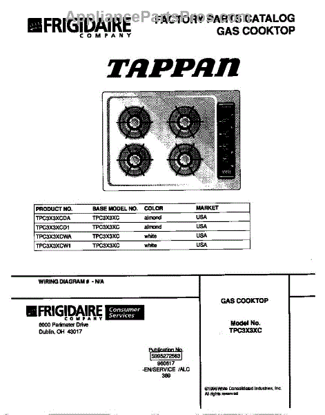 Parts for Frigidaire TPC3X3XCW1: 01 - Cover Parts