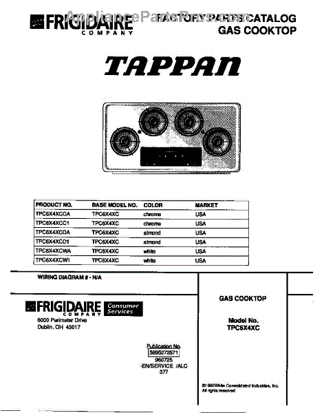 Parts for Frigidaire TPC6X4XCC1: 01 - Cover Parts