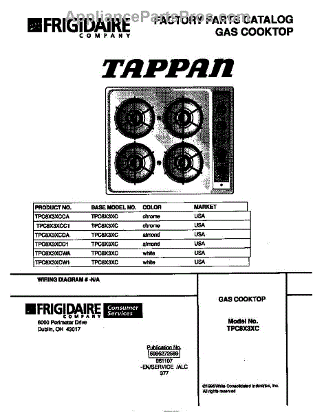 Parts for Frigidaire TPC8X3XCW1: 01 - Cover Parts