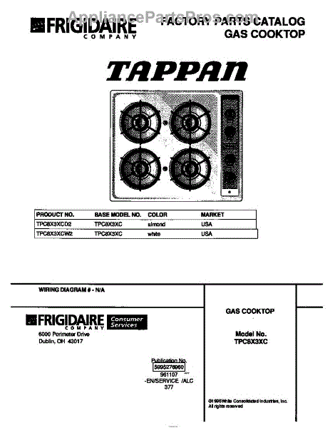 Parts for Frigidaire TPC8X3XCW2: 01 - Cover Parts