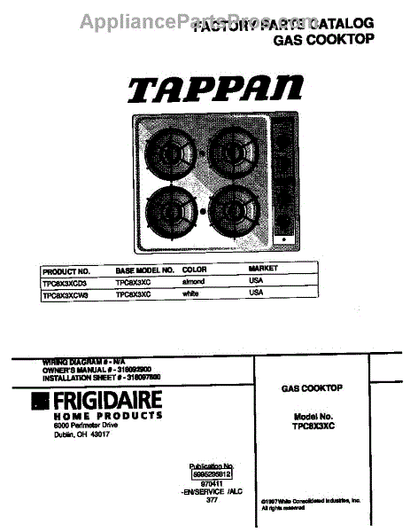 Parts for Frigidaire TPC8X3XCW3: 01 - Cover Parts