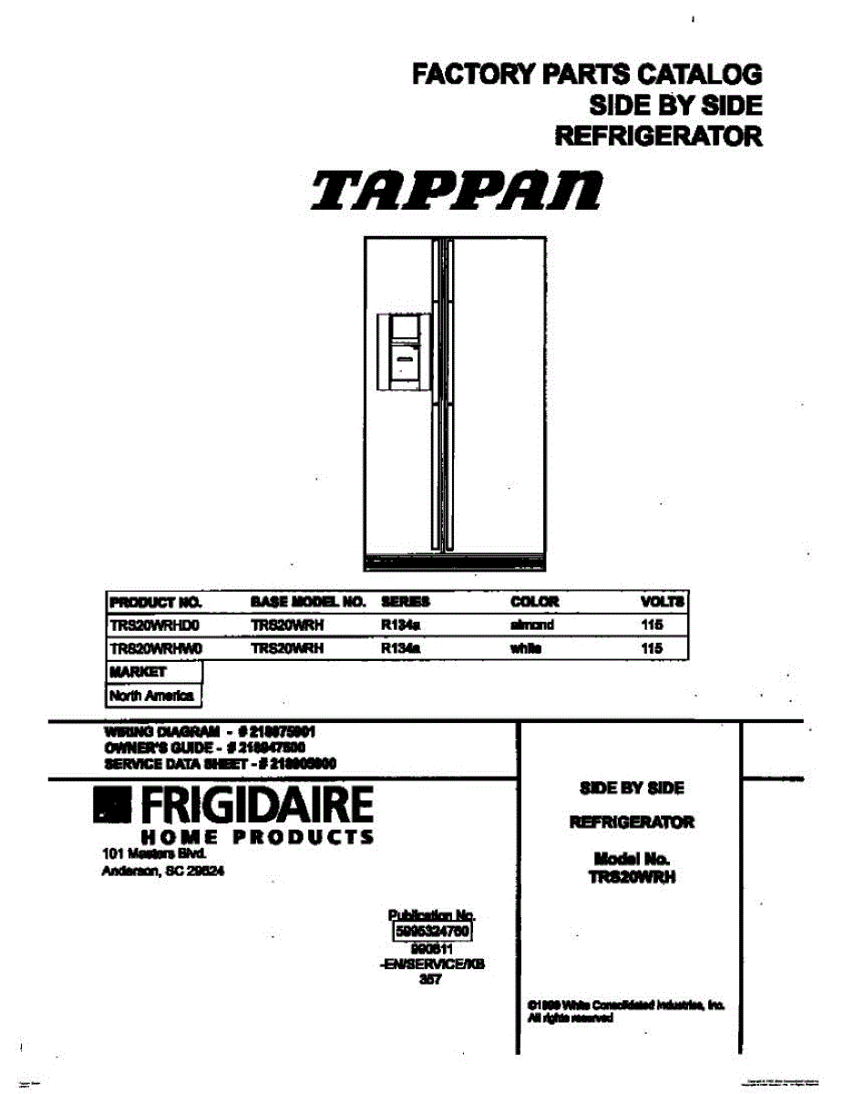 Parts for Frigidaire TRS20WRHW0: 01 - Cover Parts