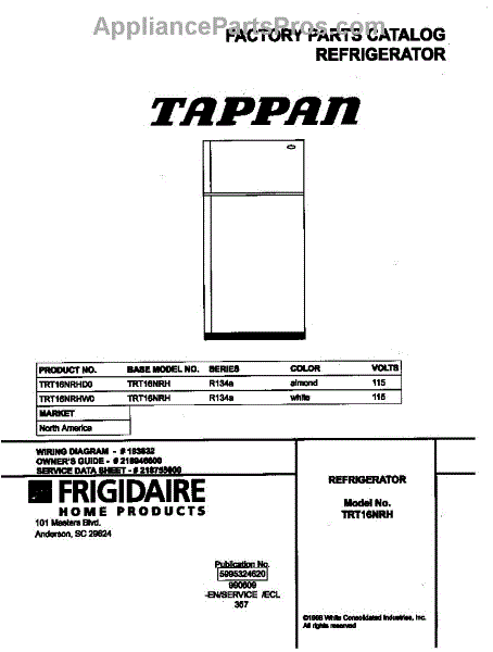 Parts for Frigidaire TRT16NRHD0: 01 - Cover Parts
