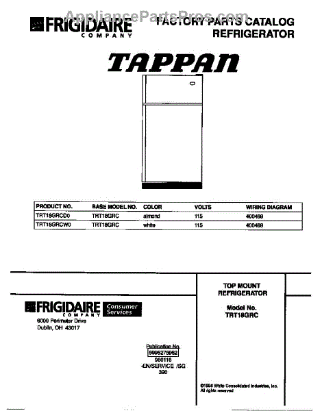 Parts for Frigidaire TRT18GRCD0: 01 - Cover Parts