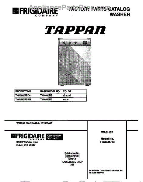 Parts for Frigidaire TWX645RBD4: 01 - Cover Parts