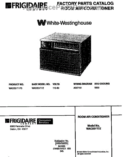Parts for Frigidaire WAC051T7Z5: 01 - Cover Parts