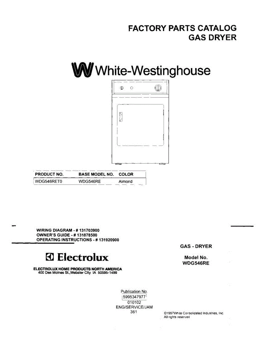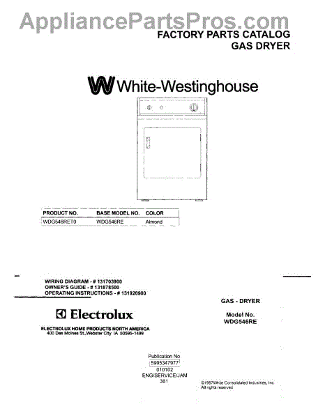 Parts for Frigidaire WDG546RET0: 01 - Cover Parts