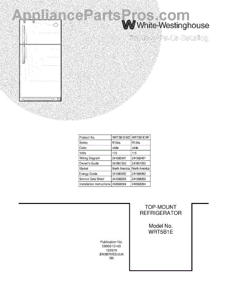 Parts for Frigidaire WRT5B1EWF: 01 - Cover Parts