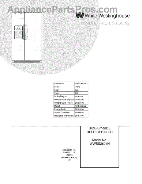Parts for Frigidaire WWSS2601NE1: 01 - Cover Parts