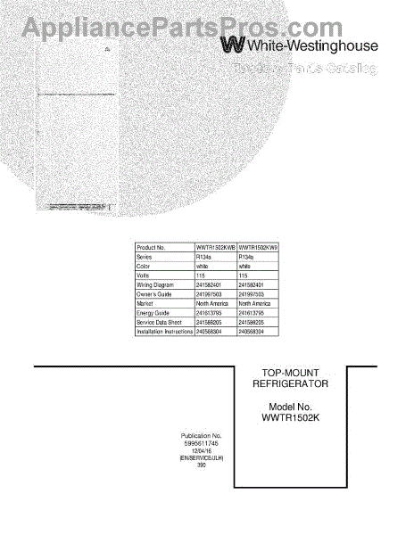 Parts for Frigidaire WWTR1502KWB: 01 - Cover Parts