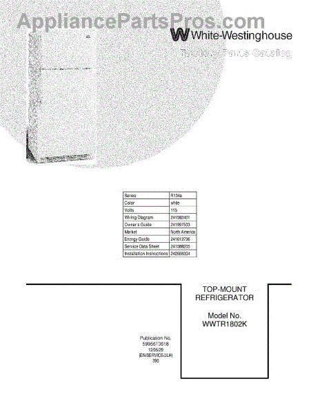 Parts for Frigidaire WWTR1802KWA: 01 - Cover Parts