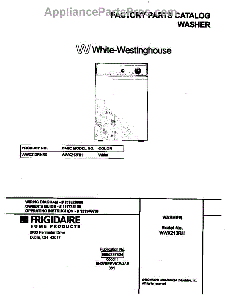 Parts for Frigidaire WWX213RHS0: 01 - Cover Parts