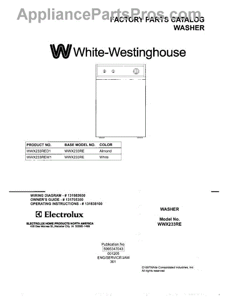 Parts for Frigidaire WWX233RED1: 01 - Cover Parts