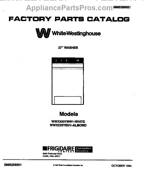 Parts for Frigidaire WWX233YBW1: 01 - Cover Parts