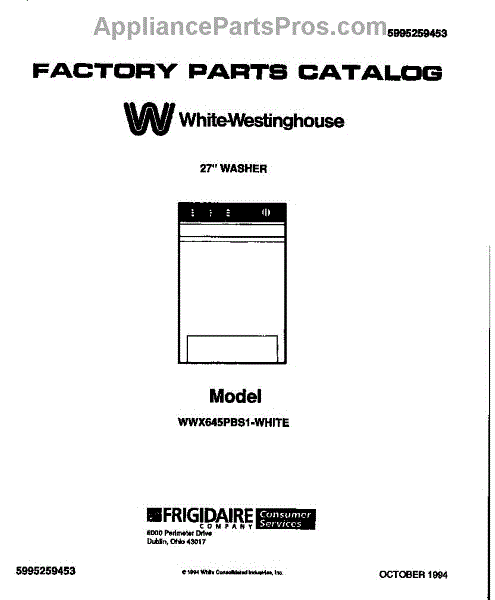 Parts for Frigidaire WWX645PBS1: 01 - Cover Parts