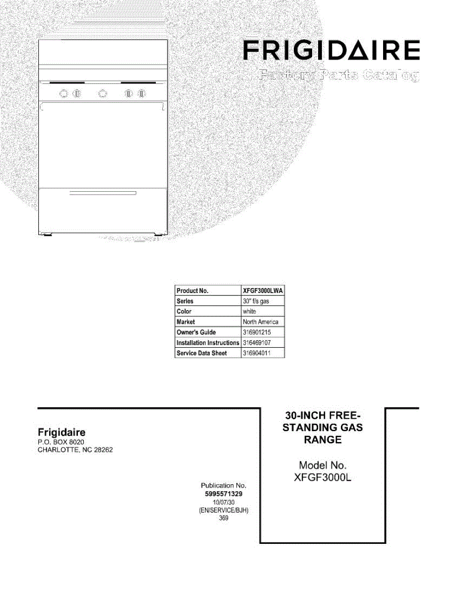 Parts for Frigidaire XFGF3000LWA: 01 - Cover Parts