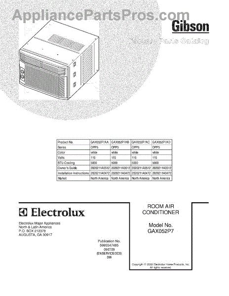 Parts for Gibson GAX052P7AD: 01 - Cover Parts