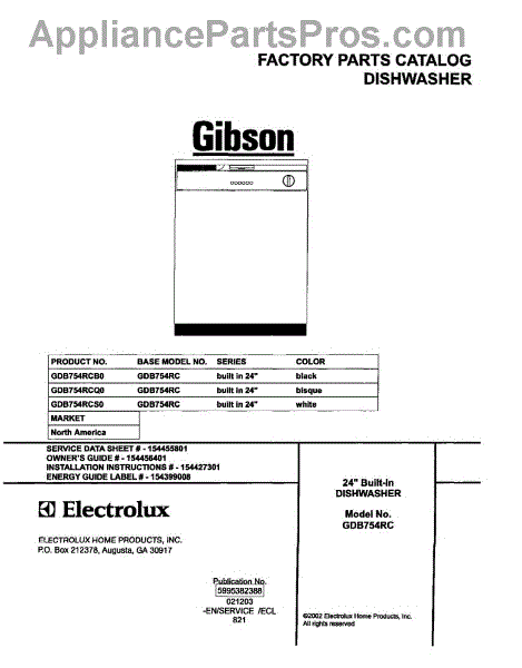 Parts for Gibson GDB754RCQ0: 01 - Cover Parts