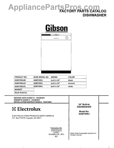 Parts for Gibson GDB755RJB1: 01 - Cover Parts