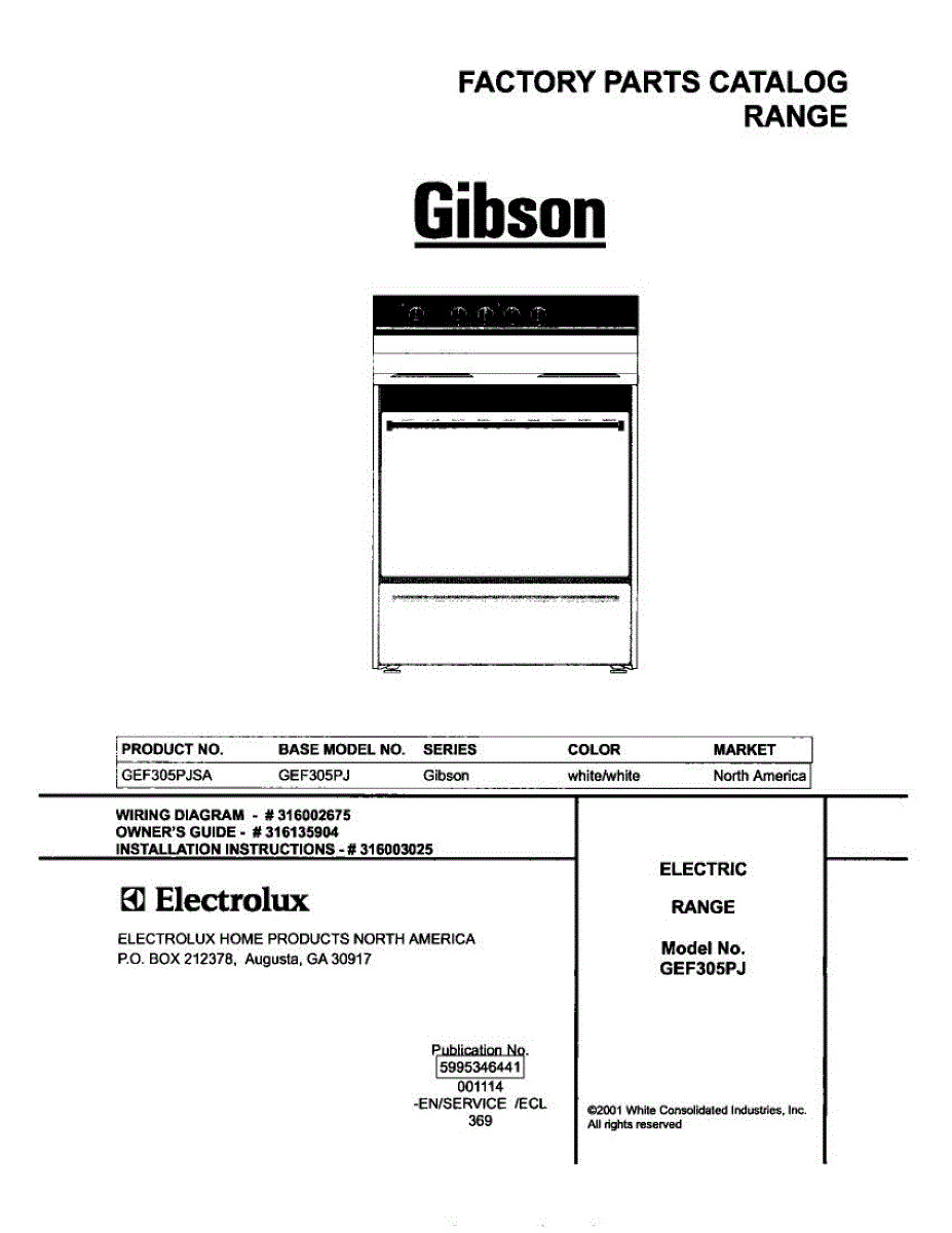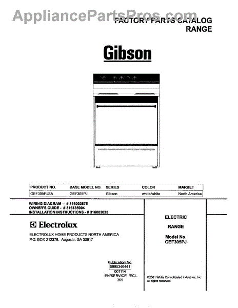Parts for Gibson GEF305PJSA: 01 - Cover Parts