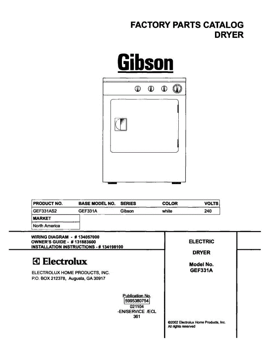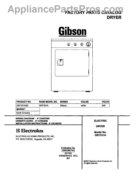 Parts for Gibson GEF331AS2: 01 - Cover Parts